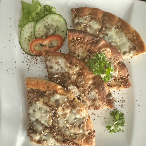 mit Fladenbrot, Hähnchen, orientalische Gewürze, syrische Pickles, Mozzarella, Mayonnaise